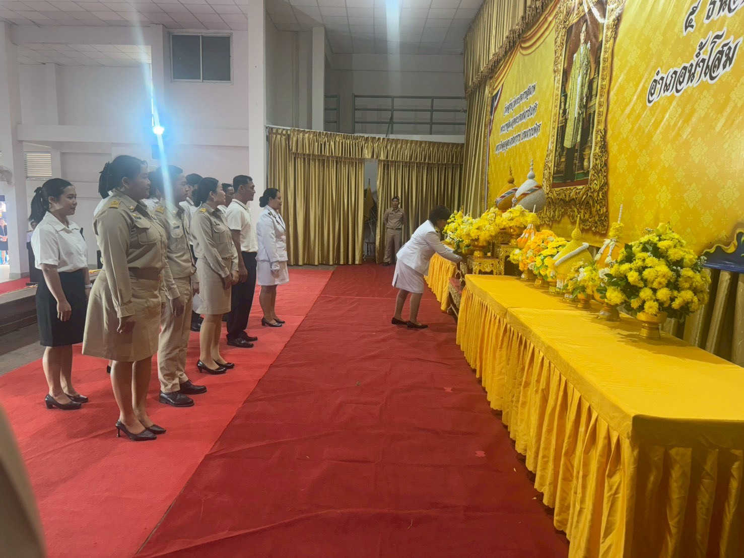 องค์การบริหารส่วนตำบลศรีสำราญ นำ โดย นางพิมภาดา ชาวดร ครูชำนาญการ รักษาราชการแทน ผู้อำนวยการศูนย์พัฒนาเด็กเล็กบ้านโนนนานโพธิ์ องค์การบริหารส่วนตำบลศรีสำราญพร้อมกับคณะพนักงานข้าราชการ ลูกจ้างประจำ พนักงานจ้างสังกัดองค์การบริหารส่วนตำบลศรีสำราญ ร่วมกิจกรรมเนื่องในวันคล้ายวันพระบรมราชสมภพ พระบาทสมเด็จพระบรมชนกาธิเบศร มหาภูมิพลอดุลยเดชมหาราช บรมนาถบพิตร วันชาติ และวันพ่อแห่งชาติ ในวันศุกร์ที่ ๕ ธันวาคม ๒๕๖๘ เวลา ๐๗.๐๐ น ณ หอประชุมอำเภอน้ำโสม