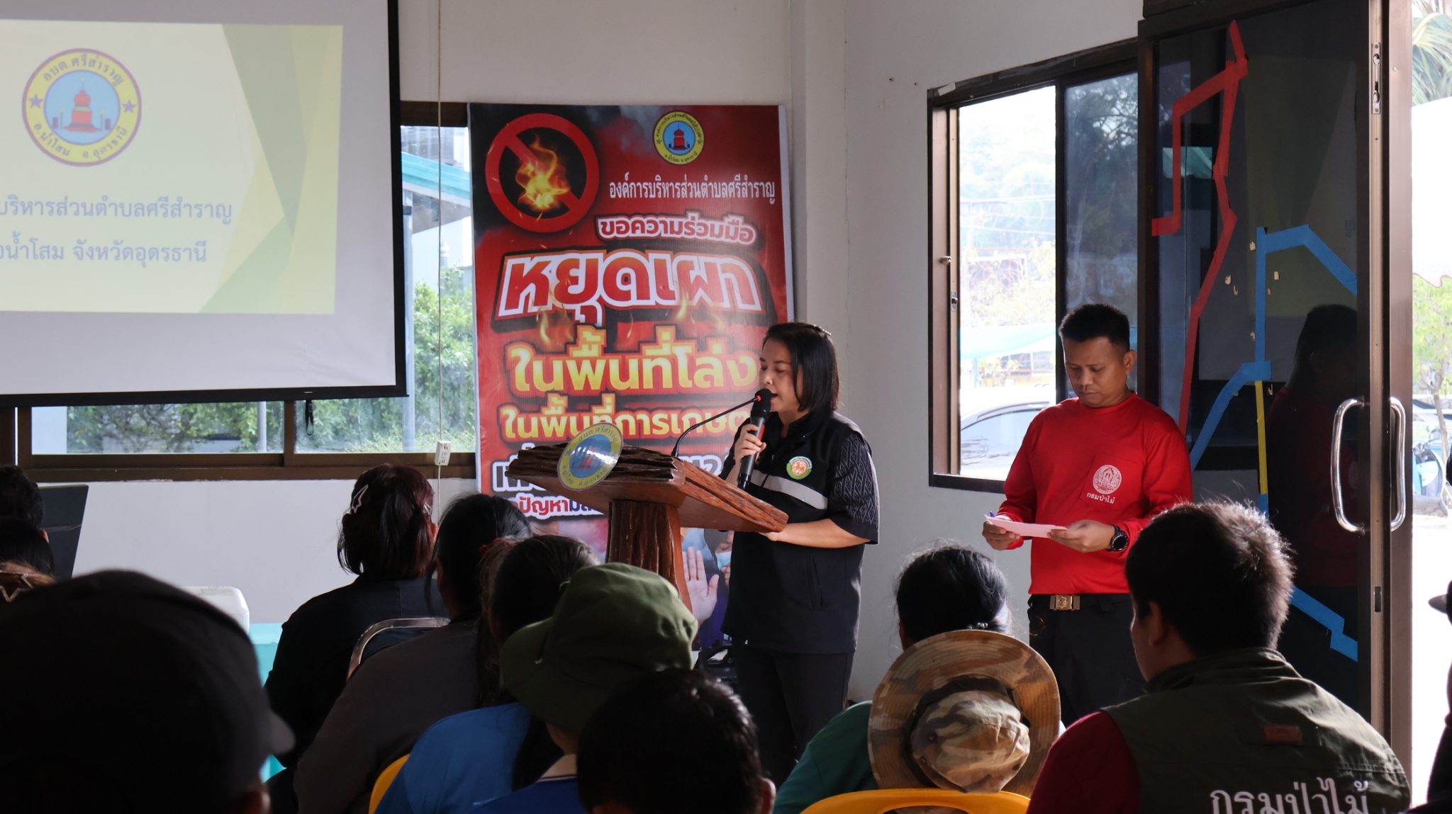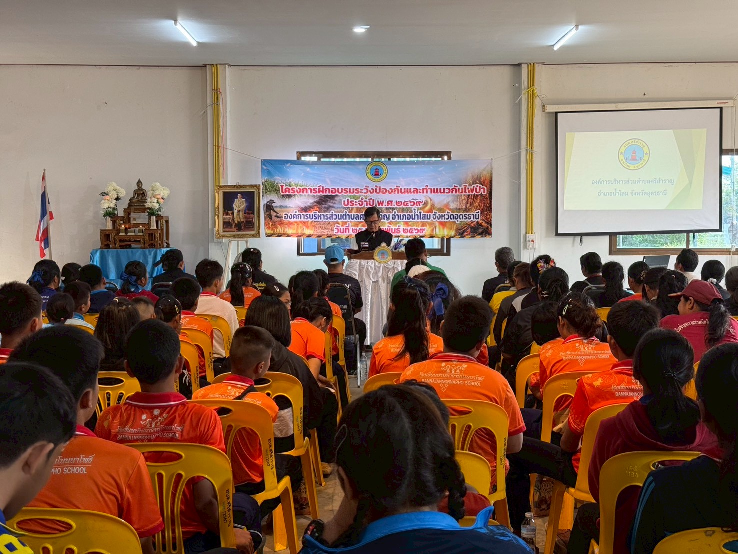 - ผู้เข้าร่วมโครงการฯ ประกอบด้วย คณะผู้บริหาร ,สมาชิกสภาฯ ,ข้าราชการ ,พนักงานฯ ,เจ้าหน้าที่หน่วยป้องกันและพัฒนาป่าไม้น้ำโสม ,กำนัน-ผู้ใหญ่บ้าน ,ครู-นักเรียน ,ชุดปฏิบัติการจิตอาสาภัยพิบัติ ,และประชาชนจิตอาสาในเขตพื้นที่ตำบลศรีสำราญ รวม 135 คน โดยการฝึกอบรมบรรยายให้ความรู้และทำเเนวกันไฟป่า ณ สันเขาภูนาหลาว บ้านโสมเจริญ ม.11 ต.ศรีสำราญ อ.น้ำโสม จ.อุดรธานี